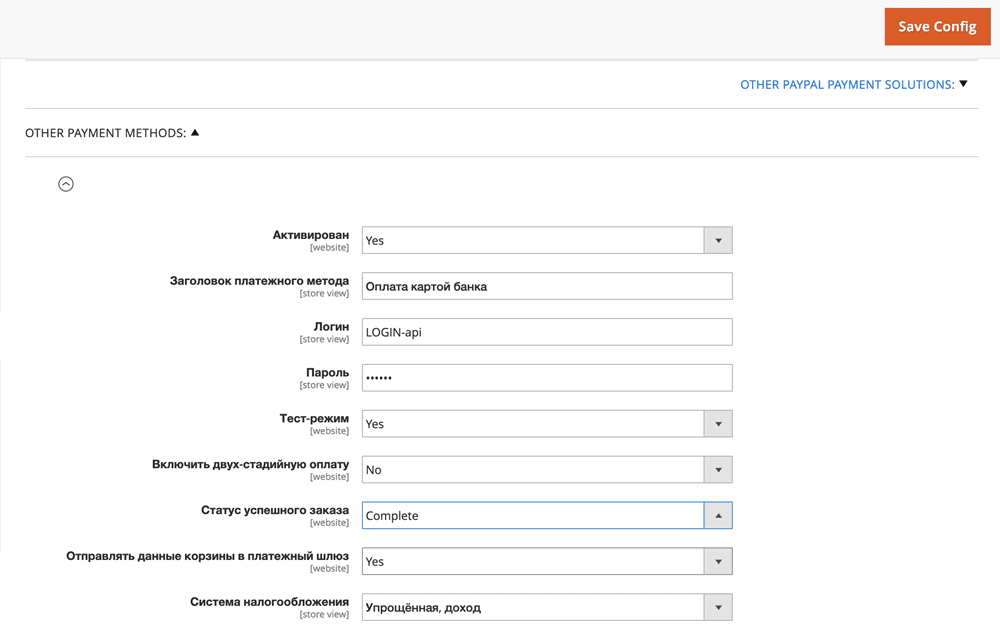 Чтобы настроить платежный плагин для Magento, выполните следующие действия.