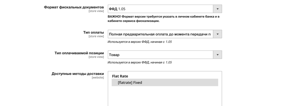 Настройки имеют силу, только если выбран формат фискальных документов версии 1.05 и выше. |
