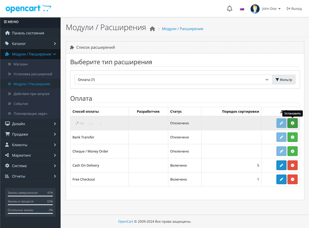 Чтобы установить платежный плагин для Magento, выполните следующие действия.