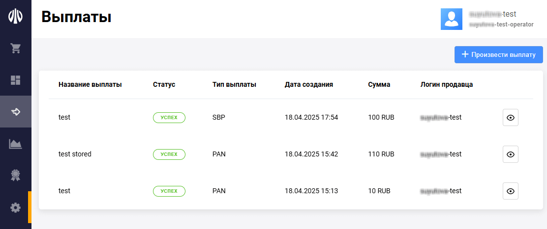 Возможность проводить Выплаты подключается по запросу в службу поддержки.