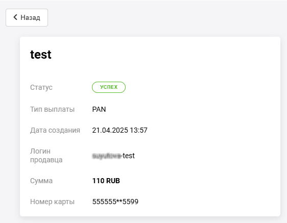 - Номер карты — маскированный номер карты, на которую произведена выплата.