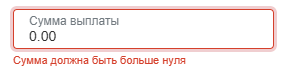 Сумма выплаты, может иметь как минимальный, так и максимальный лимит в зависимости от настроек Партнера в платежном шлюзе. Если ввести сумму вне допустимого диапазона, будет отображено сообщение об ошибке.