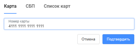 Для выплаты на карту необходимо указать номер карты клиента, на которую будет отправлен платеж.