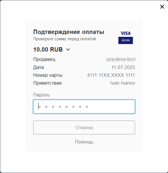 Также может потребоваться прохождение 3DS — нужно будет ввести код для подтверждения списания средств с корпоративной карты.