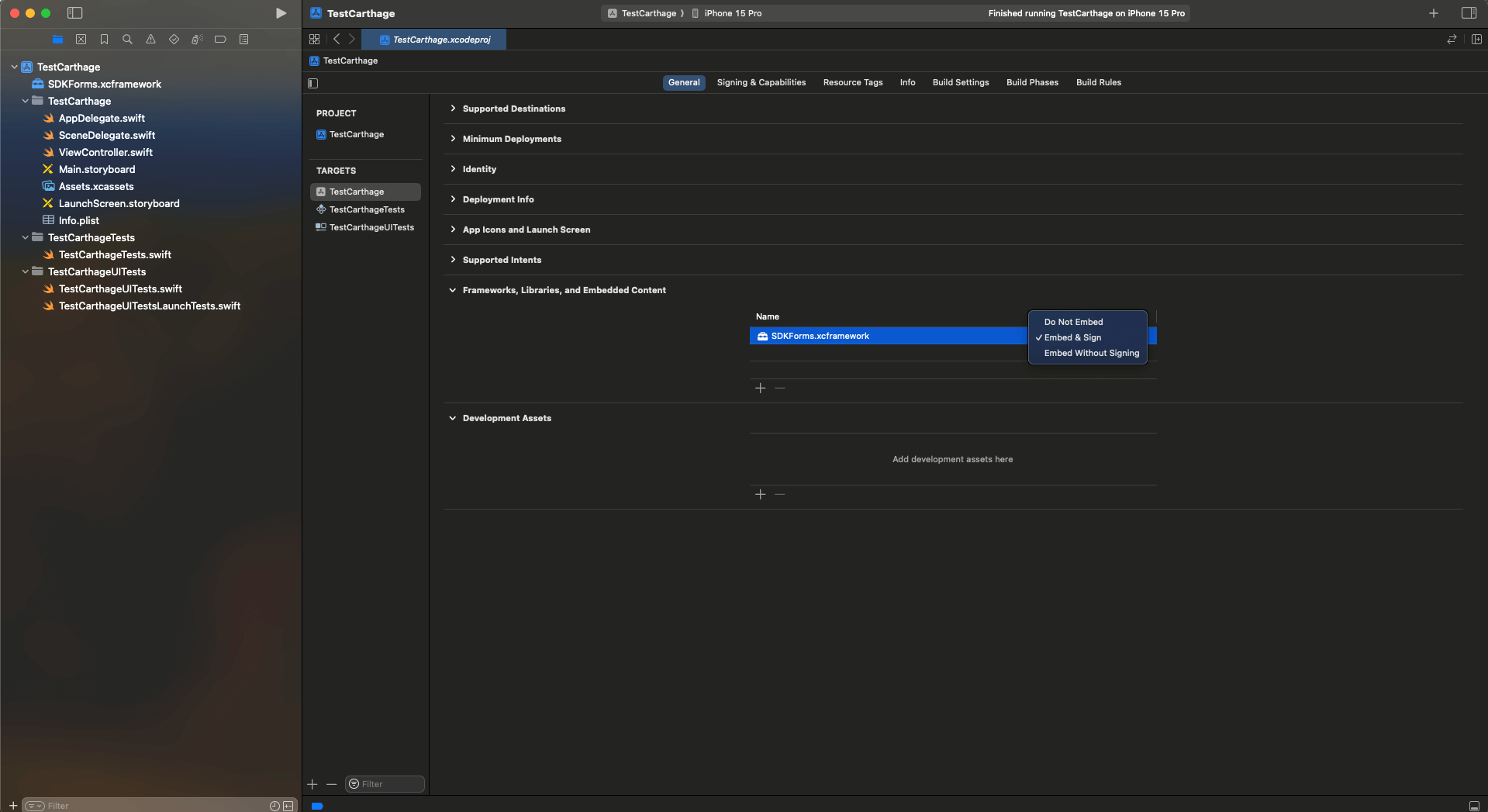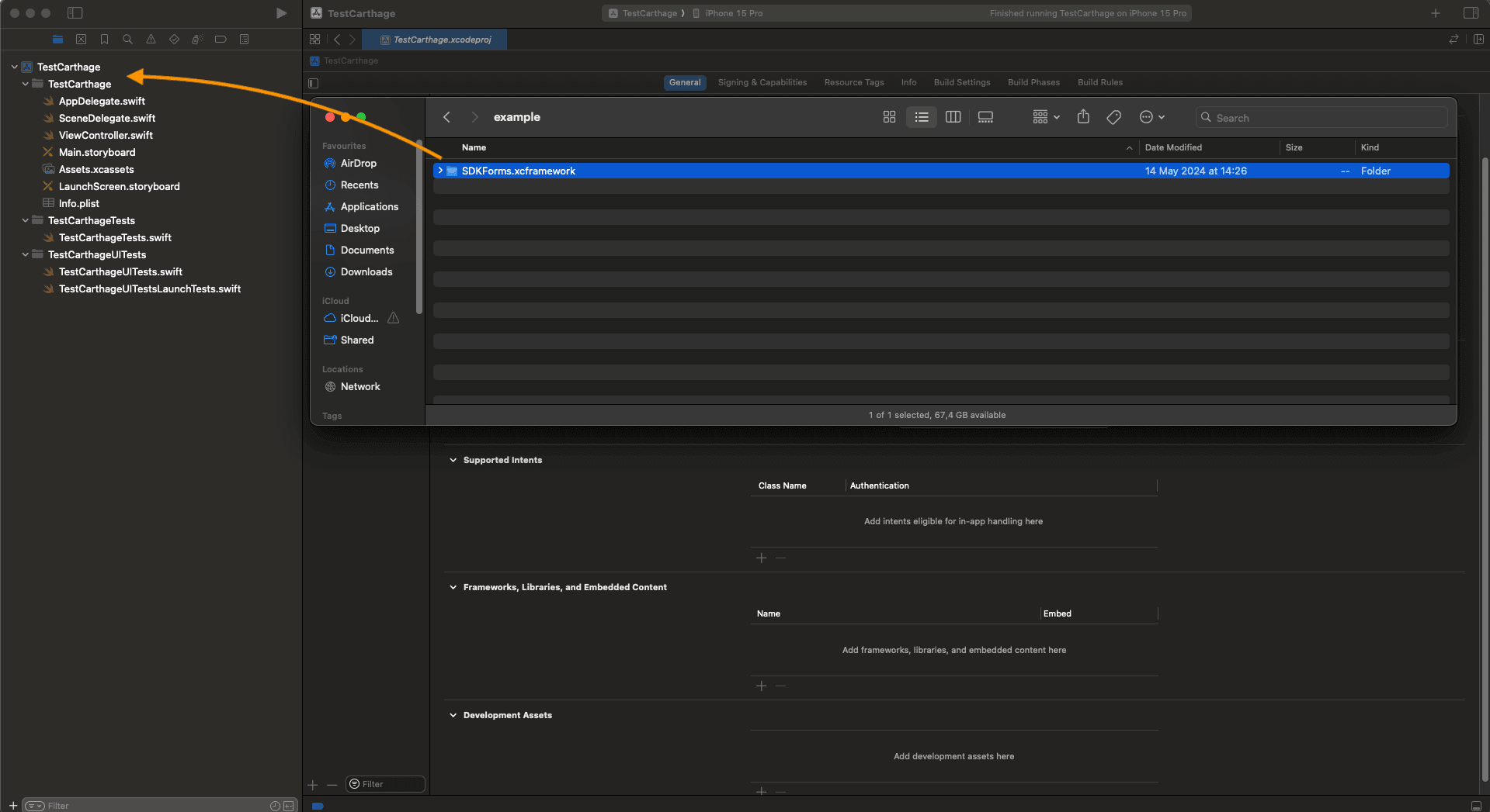 SDKCore.frameworkиSDKForms.framework, а затем добавьте их в папку проекта.